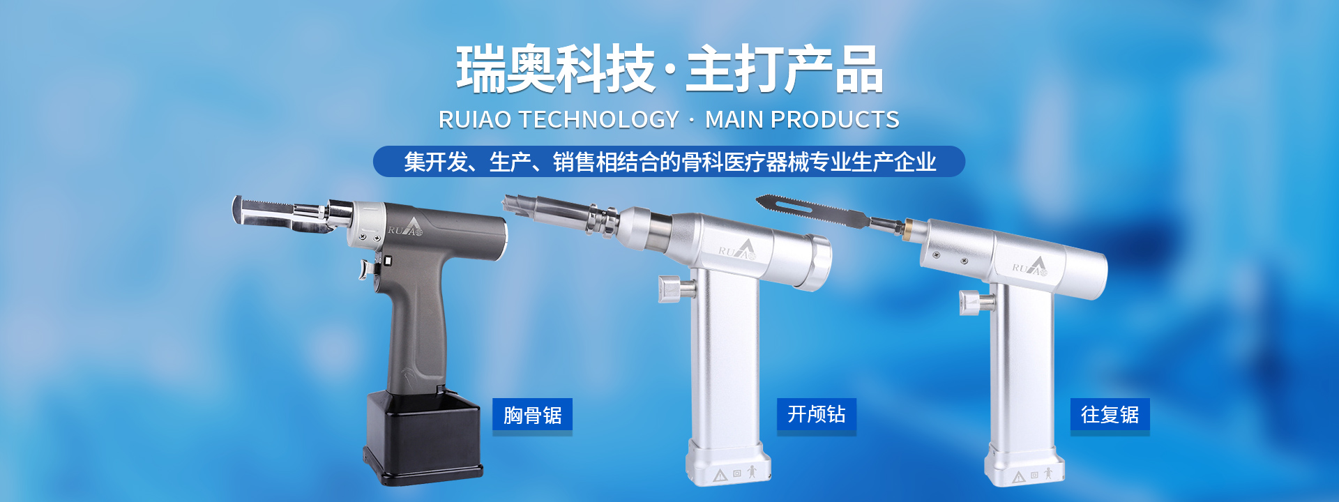 鹽城瑞奧科技有限公司主要產(chǎn)品:醫(yī)用電動(dòng)鋸鉆系列(可高溫高壓消毒和熏蒸消毒兩種):包含骨鉆、擺鋸、胸骨鋸、空心骨鉆、開(kāi)顱鉆、顱骨銑等等,適用于骨科、腦外科、神經(jīng)外科、胸外科、手足及顯微外科、脊柱外科、整形外科等各種手術(shù)的要求。電動(dòng)石膏鋸可切割高分子繃帶、石膏等。基礎(chǔ)器械系列:咬骨鉗,髓核鉗,椎板咬骨鉗,持骨鉗,四肢骨折手術(shù)器械包等。